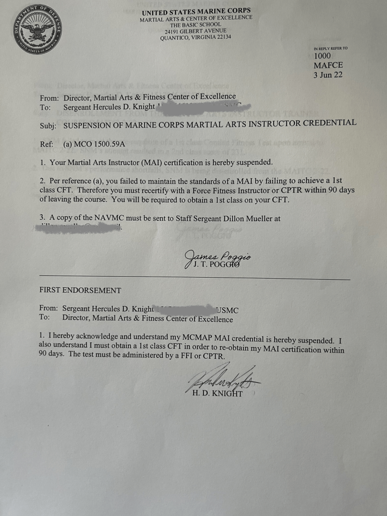 I respect the leaders of the course for their professional but business like mentality of dropping us. They will listen to the Marines but the decision was already made. We simply didn’t make the standard. I’ve been in the Marine Corps almost six years and have earned high first class PFT and CFT until I arrived at the Martial Arts Center of Excellence in Quantico Virginia. It was a hard gut check and I didn’t have anything to say if the decision was already made. No remediation but an explanation that the Instructor Trainers is qualified to count the repetition. The point is not about the argumentative view of the order and what happened. This is about bouncing back and clearing out all the clutter that came into my mind as soon as I realized I had missed the standard. The same standard I gatekeep aboard Camp Lejeune, North Carolina. The multiple times I stress to Marines of having strict dead hang pull ups, crunches and ammo can lifts. I have to eat my own words and head back to the unit that prided me as “Sergeant MCMAP” because I represented the program not only the battalion but multiple units on base. There was no counseling or mentorship. Dropped and notified that the next course was in August.